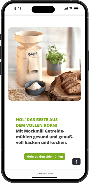 Grainlovers ist ein deutsches Unternehmen, das sich auf hochwertige Getreidemühlen und Flockenquetschen spezialisiert hat. Mit dem Ziel, den vollen Genuss von frischen, selbstgemachten Lebensmitteln direkt in die Küchen ihrer Kunden zu bringen, bietet Grainlovers Produkte wie die Mockmill Getreidemühlen und den E-Flaker an. Die Marke spricht gesundheitsbewusste Verbraucher an, die Wert auf Qualität und Frische legen.